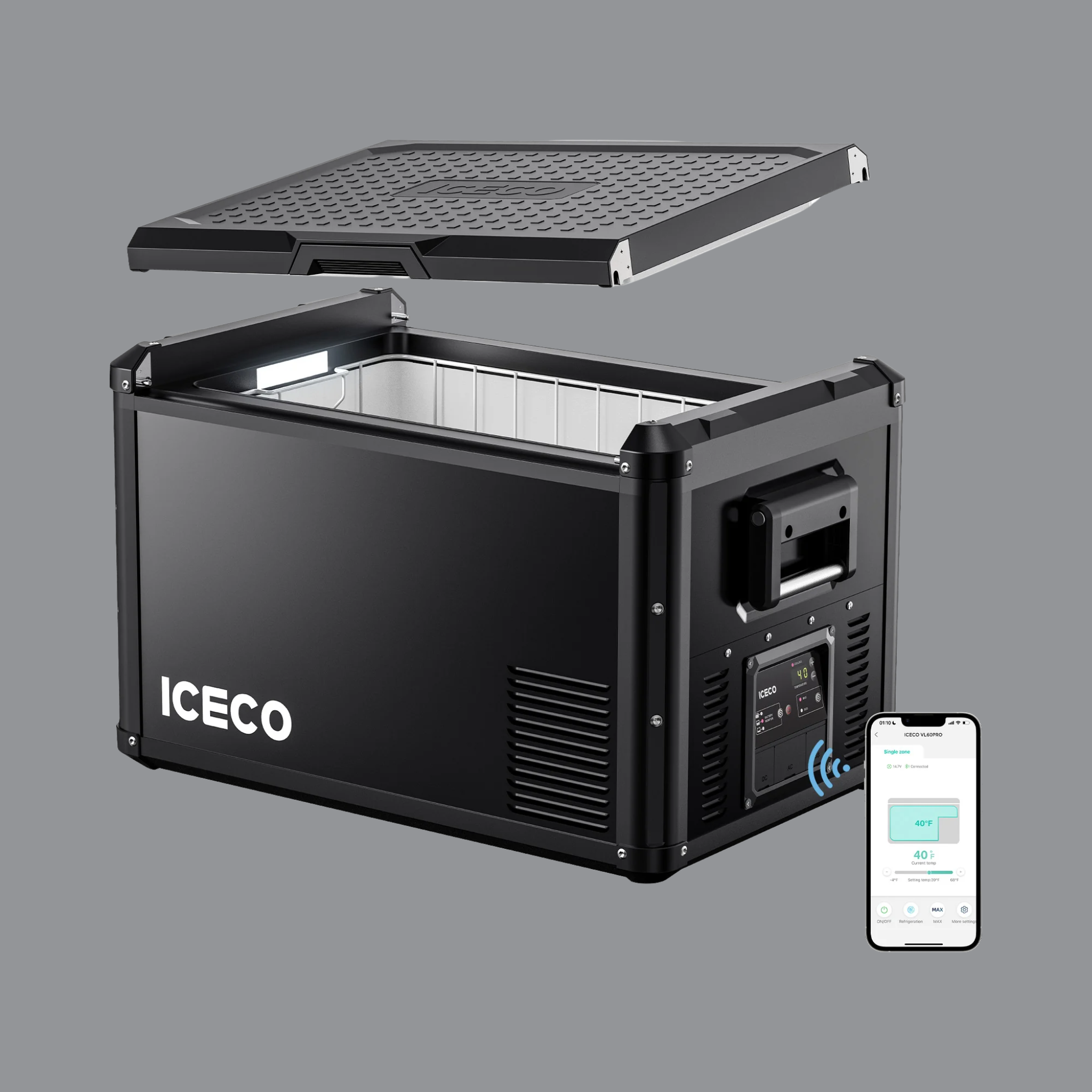Thanks to Bluetooth connection, you can conveniently control the VL 60 PROS via the ICECO app – even while driving. Set temperatures, switch between ECO and MAX modes, or activate the battery protection – all directly from your smartphone. This way, you always maintain full control over your cooling.